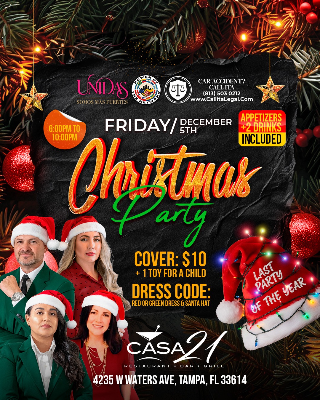 Y al día siguiente, el 5 de diciembre, estaremos celebrando nuestra Christmas Party en Casa 21. Será una noche para disfrutar, reír, relajarnos y alimentar ese espíritu navideño que tanto nos llena de alegría. Queremos que formes parte de esta celebración que estamos preparando con mucho cariño.